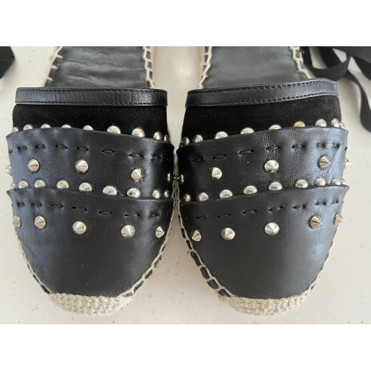 Alexander McQueen black leather studded espadrilles size 39